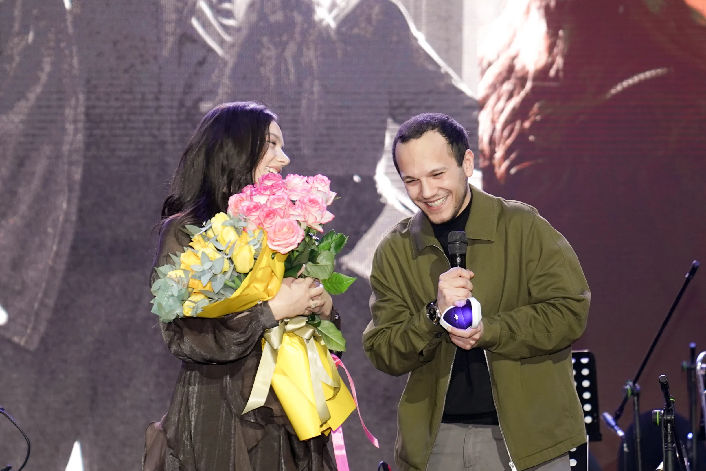 Երեկոյի թերևս ամենահուզիչ ու ամենաանսպասելի պահը՝ պատմությունն է այն մասին, թե ինչպես է պատերազմից հետո սերը փոխում մարդու կյանքը։ Շահառուներից մեկի՝ պատերազմի դաշտում վիրավորված Հարությունի և Արփիի սերը հենց դահլիճում նոր կարգավիճակ ստացավ․ Հարությունը ամուսնության առաջարկ արեց իր սիրելիին։