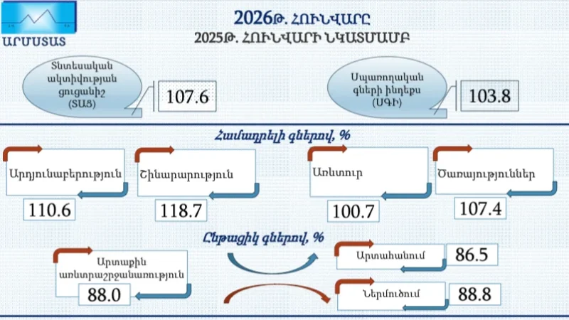 ՀՀ տնտեսական ակտիվության ցուցանիշի աճը 2026թ․ հունվարին կազմել է 7.6%