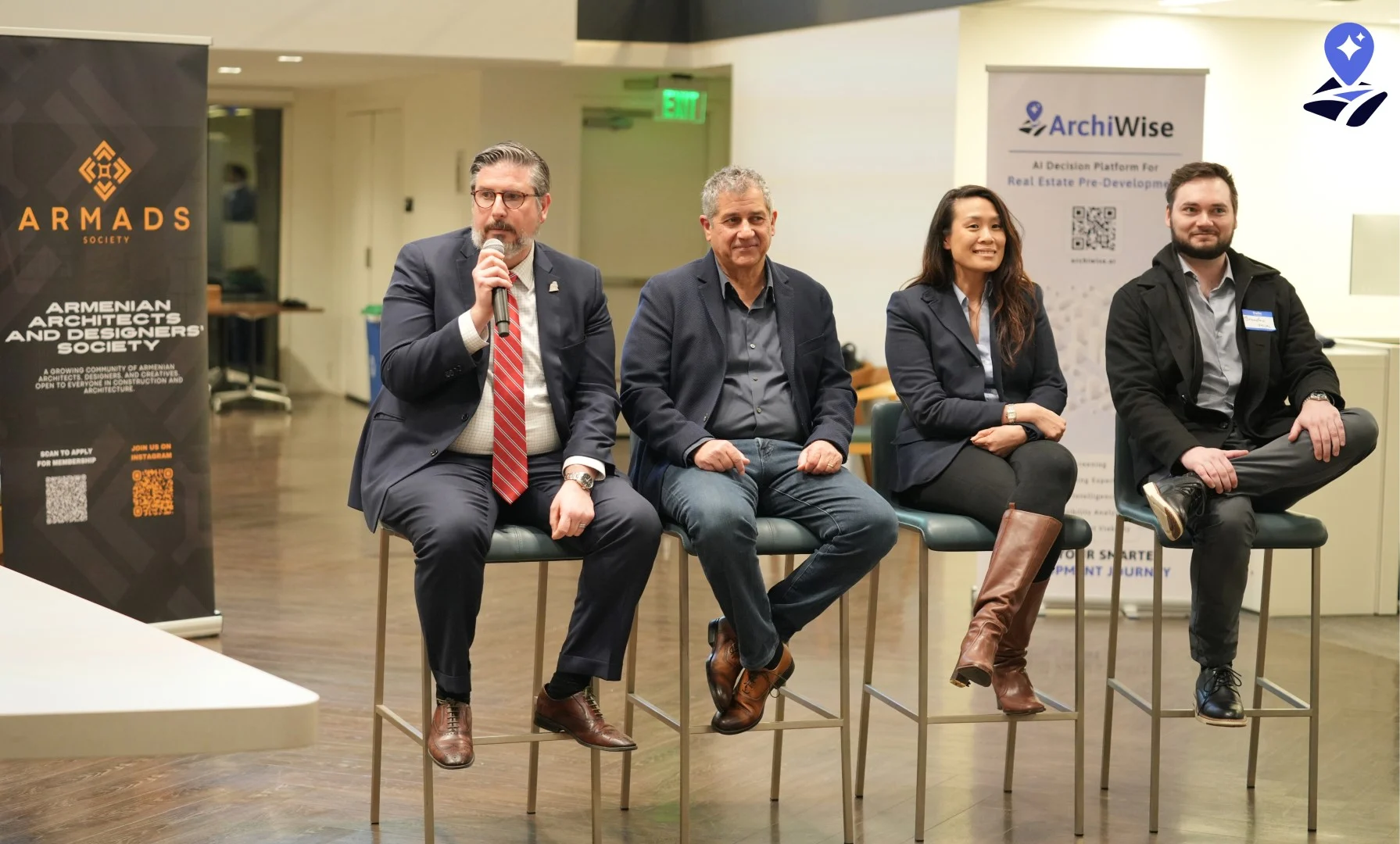 ArchiWise AI-ը ներկայացրեց իր անշարժ գույքի որոշումների կայացման պլատֆորմը CBRE-ի գլխավոր գրասենյակում (Գլենդել) կայացած ոլորտային պանելային քննարկման ժամանակ։ Միջոցառումը համախմբել էր կառուցապատողների, բրոքերների, պլանավորման մասնագետների և պետական կառավարման ծառայողների՝ քննարկելու, թե ինչպես է արհեստական բանականությունը հեղափոխում անշարժ գույքի ոլորտում որոշումների կայացման վաղ փուլերը։