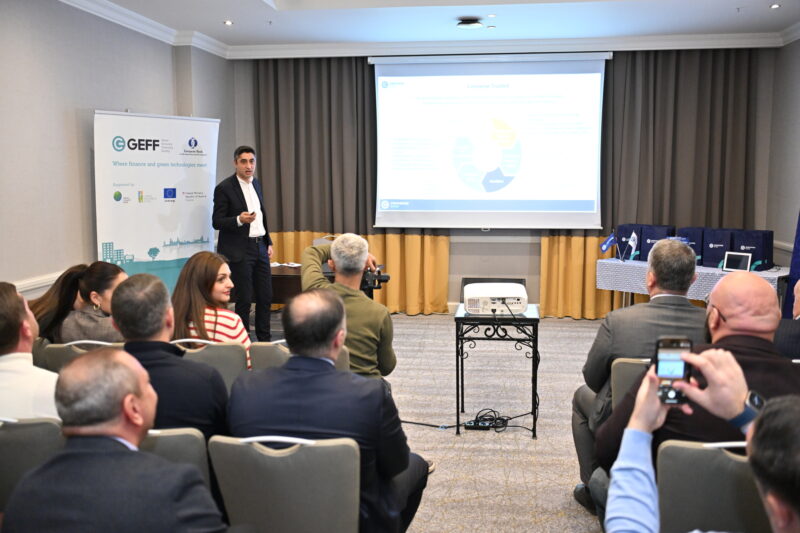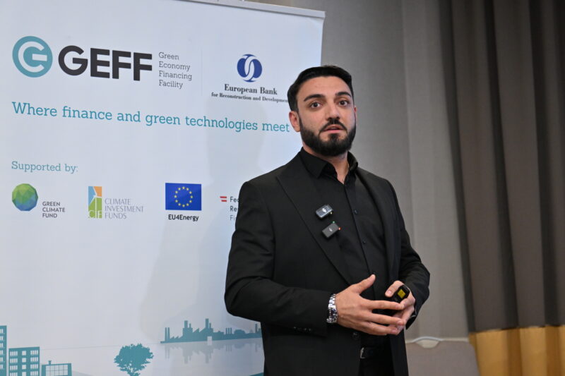 Հաջողության փորձը ներկայացրեց նաև «Եվրոէներ գրուպ» ՍՊԸ տնօրեն Դավիթ Մաթևոսյանը՝ պատմելով ընկերության գործունեության, GEFF ծրագրի առավելությունների, կանաչ ֆինանսավորման հասանելիության ընդլայնման և ծրագրի խրախուսման հստակ մեխանիզմների մասին։
