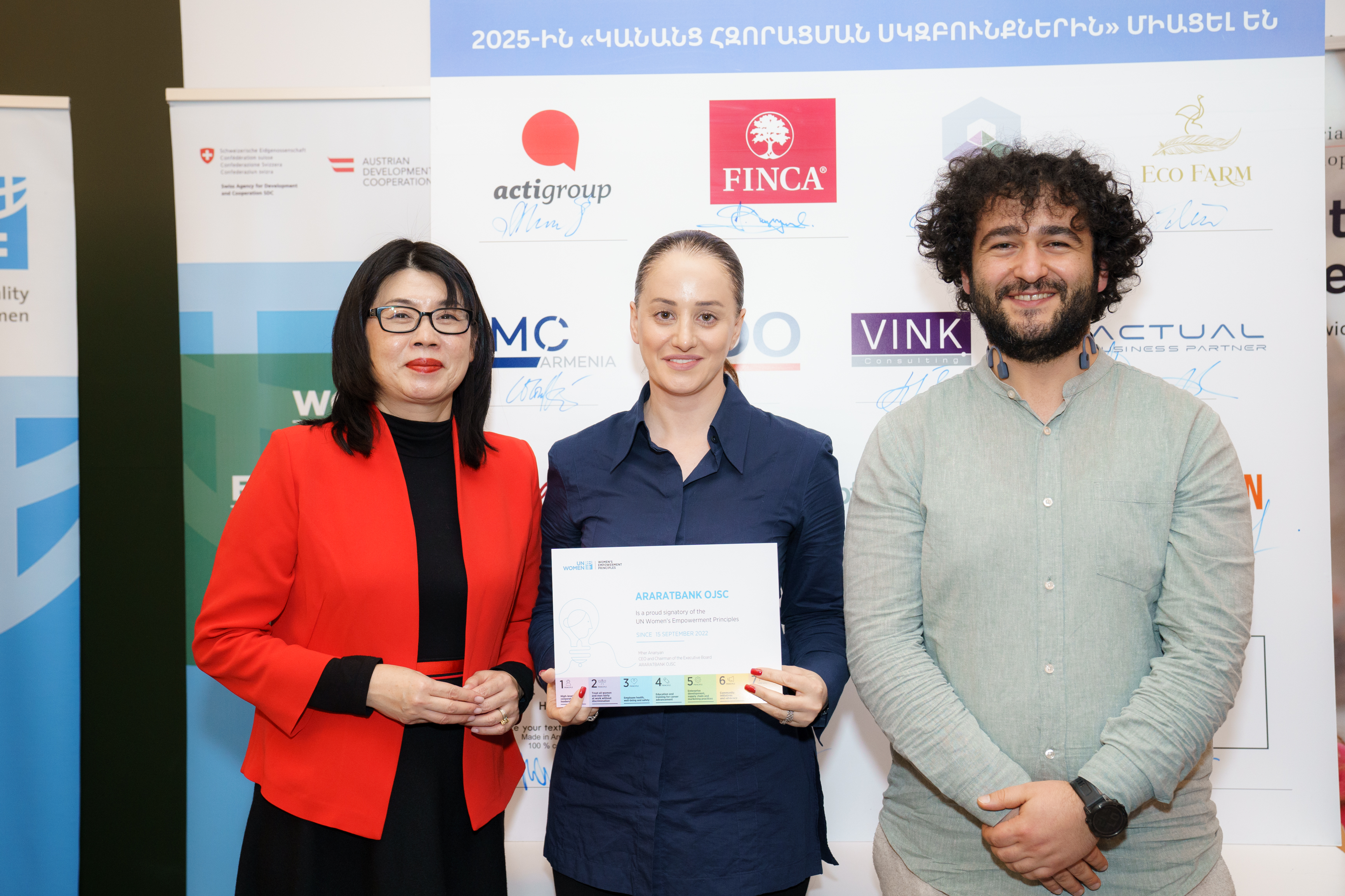 Համաժողովի ընթացքում ԱրարատԲանկին շնորհվեց «Կանանց հզորացման սկզբունքները» ստորագրած ընկերության վկայագիր։
