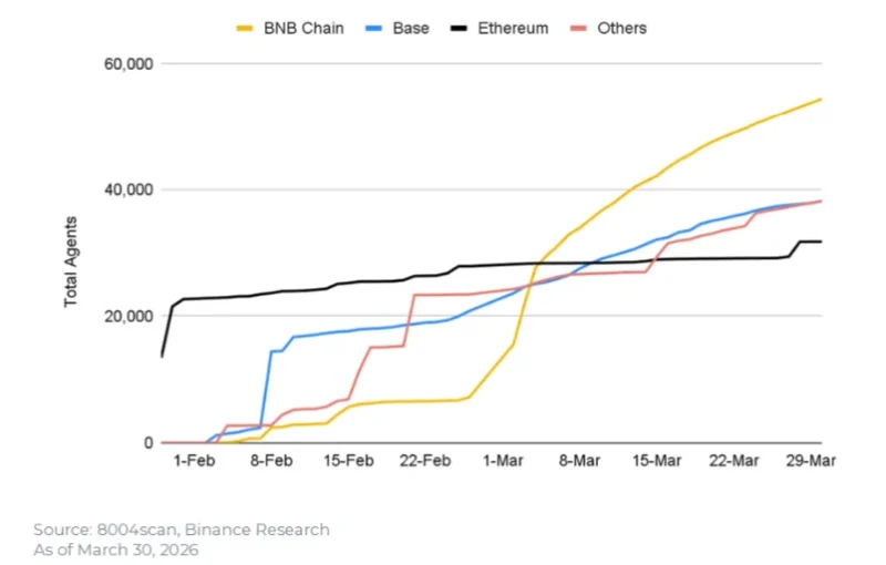 Նկար 4. Մարտին BNB Chain-ը դարձավ ERC-8004 արհեստական ​​բանականության գործակալների առաջատար ցանցը՝ գերազանցելով Ethereum-ին և Base-ին