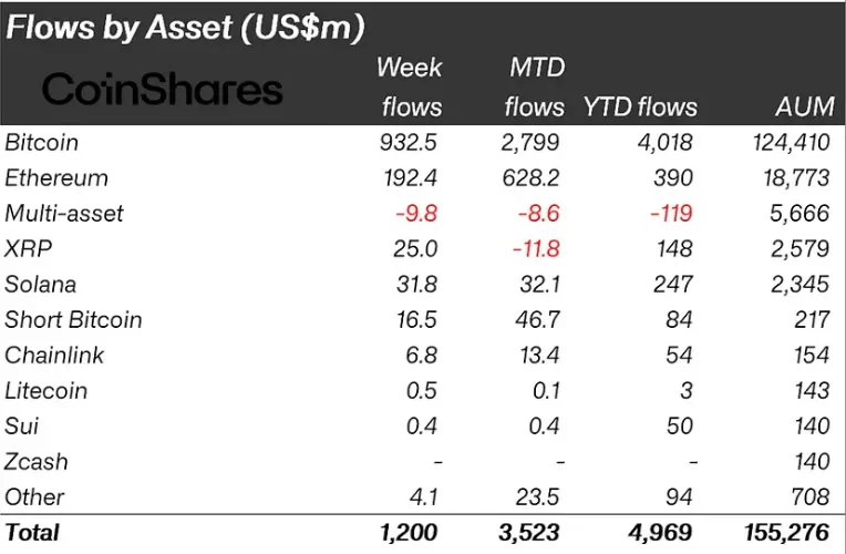 Հիմնական կրիպտոարժույթը կազմել է ներհոսքի մեծ մասը՝ 933 միլիոն դոլար: Տարվա սկզբից ի վեր մետաղադրամում ներդրումները հասել են 4 միլիարդ դոլարի: Թվային ոսկու կարճ դիրքեր թույլատրող գործիքները ներգրավել են 16.5 միլիոն դոլար։