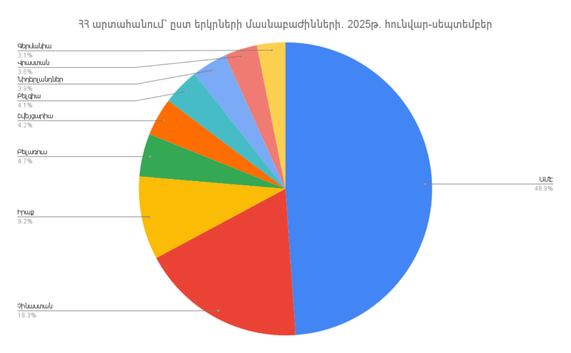 Արտահանումը Հայաստանի Հանրապետությունից՝ ըստ երկրների. 2025թ. հունվար-սեպտեմբեր