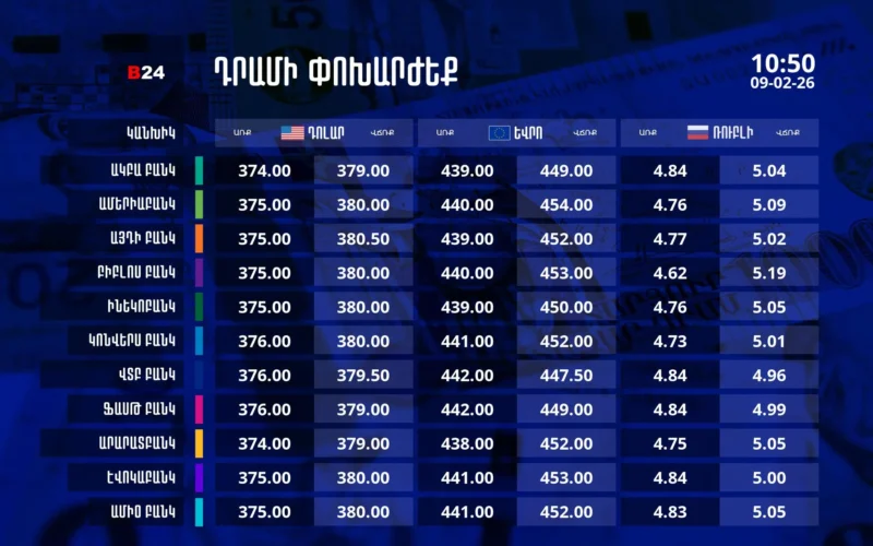 Դրամի փոխարժեք` ՀՀ բանկեր. 10:50, 09/02/26