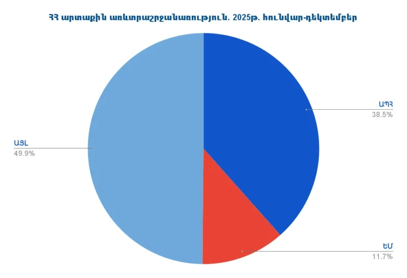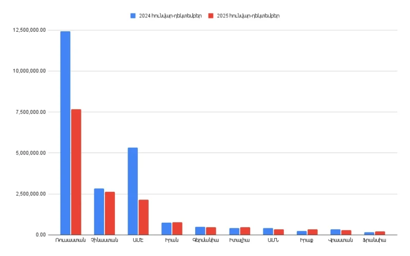 Հայաստանի արտաքին առևտրաշրջանառությունը 2025թ. հունվար-դեկտեմբերին կազմել է 18․9 մլրդ դոլար. առաջատար գործընկերը Ռուսաստանն է