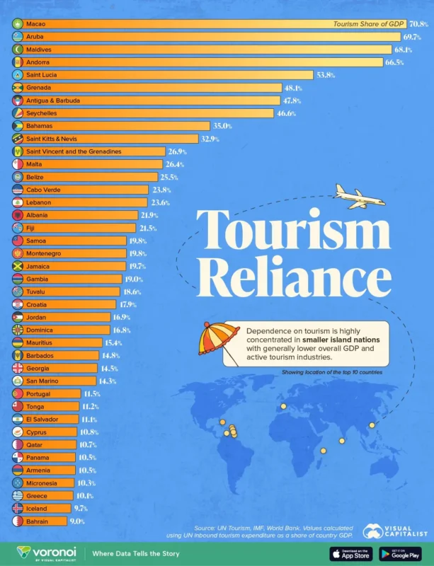 Զբոսաշրջությունից առավել կախված երկրները ըստ ՀՆԱ-ում ունեցած մասնաբաժնի․ Ինֆոգրաֆիկա