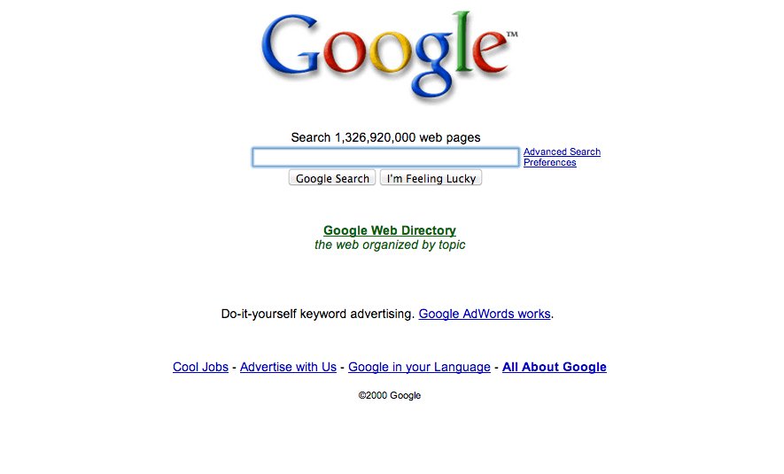 2000 թվականին Google-ը ներկայացավ հետևյալ տեսքով.