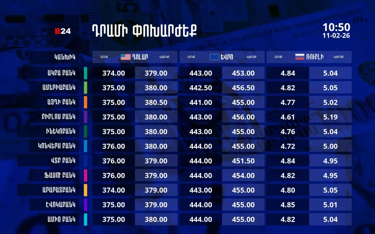 Դրամի փոխարժեք` ՀՀ բանկեր. 10:50, 11/02/26
