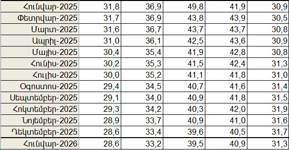 ՀՀ Կենտրոնական բանկի հրապարակած տվյալների համաձայն 2025թ. հունվար ամսվա դրությամբ ՀՀ ռեզիդենտների արտարժութային ավանդների և փոխառությունների հարաբերակցությունը Փողի զանգվածին (D1) կազմել է 28.6%, որը 2024թ.-ի համադրելի ցուցանիշի համեմատ նվազել է 10 տոկոսային կետով։