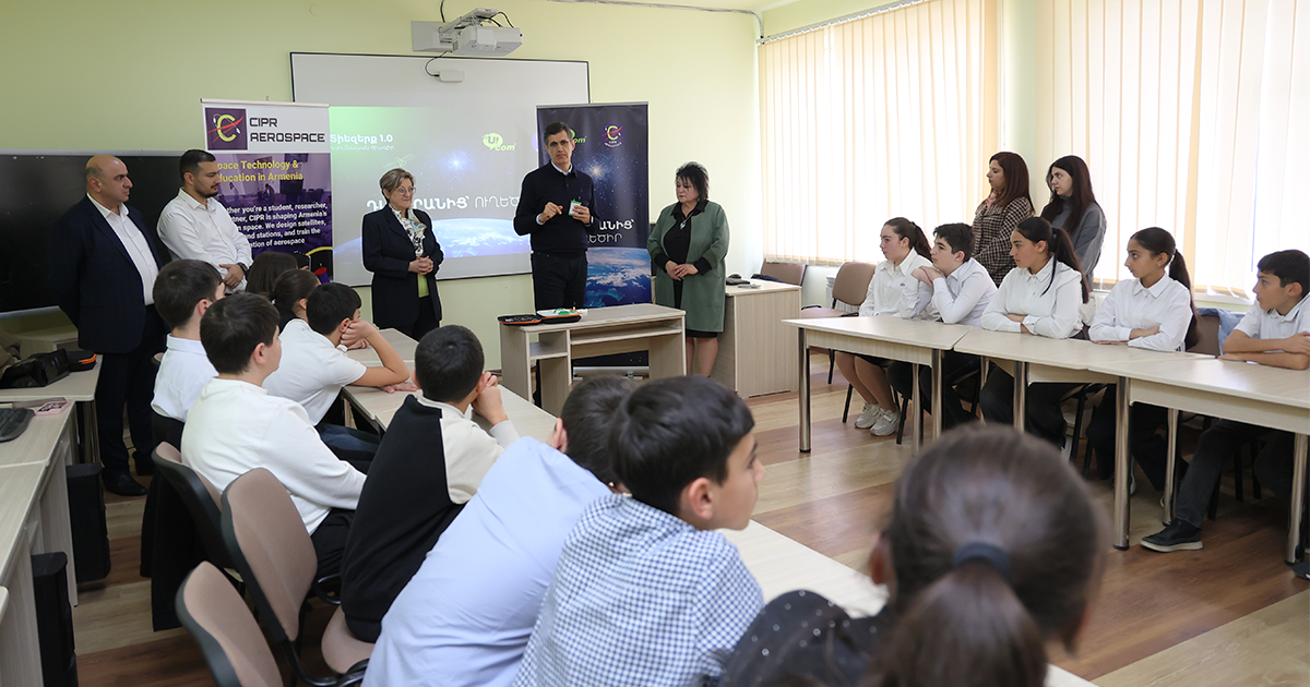 Генеральный директор Ucom Ральф Йирикян и основатель и директор CIPR Aerospace Мари Грачуи Богосян передали Ванадзорской основной школе №25 имени Виктора Амбарцумяна и Одзунской средней школе №1 имени Ованнеса Одзнеци образовательные наборы «Космос 1.0», включающие миниатюрный искусственный спутник, наземную станцию, парашютную систему и практические руководства. Специалисты CIPR Aerospace предварительно провели обучение учителей по тематическим модулям программы, после чего педагоги получили возможность проводить полноценные занятия для учеников.